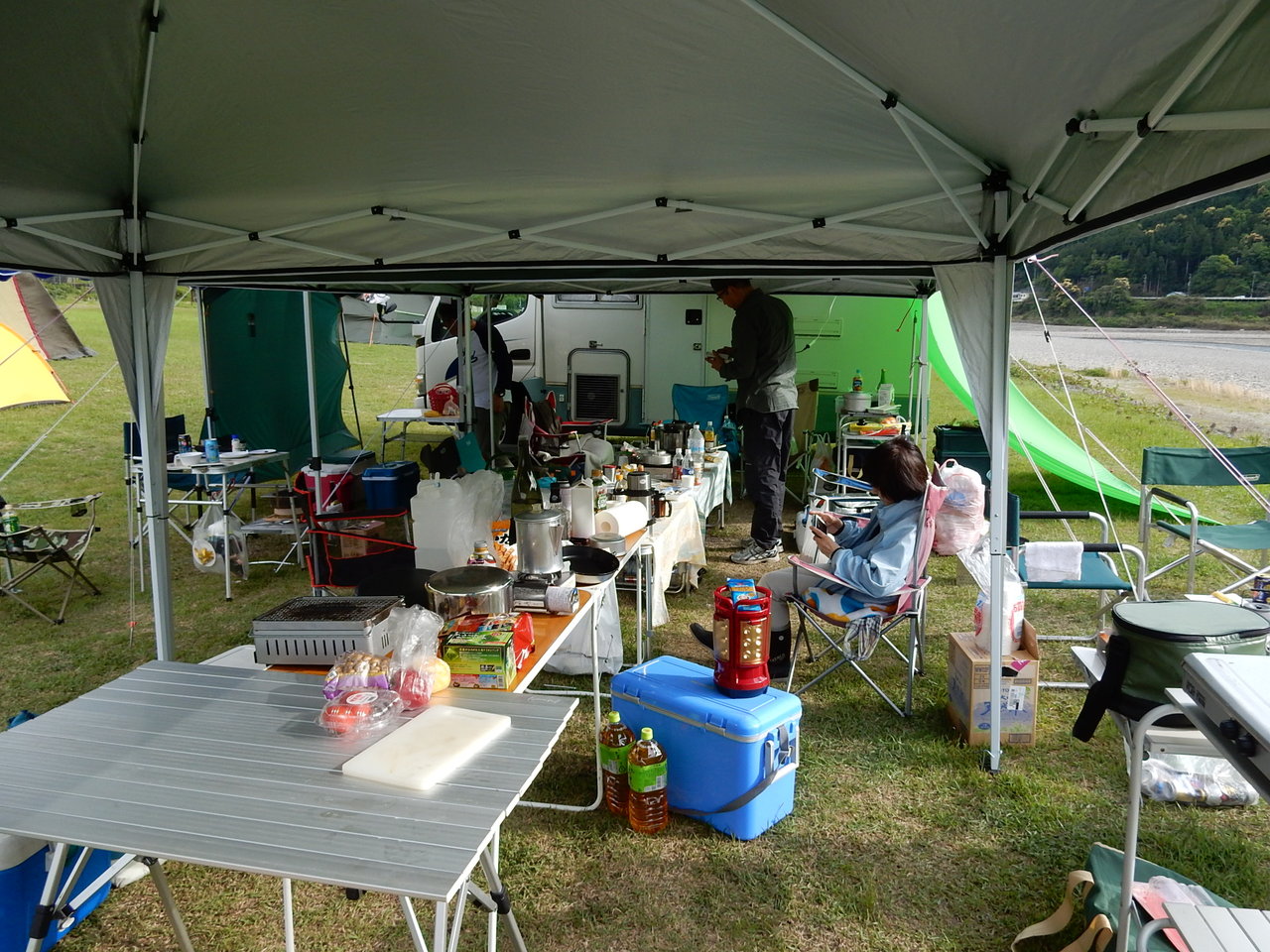 で、その天候激変に対応しつつ、ひたすらタープの下で食べ続け、飲み続けるとゆー、