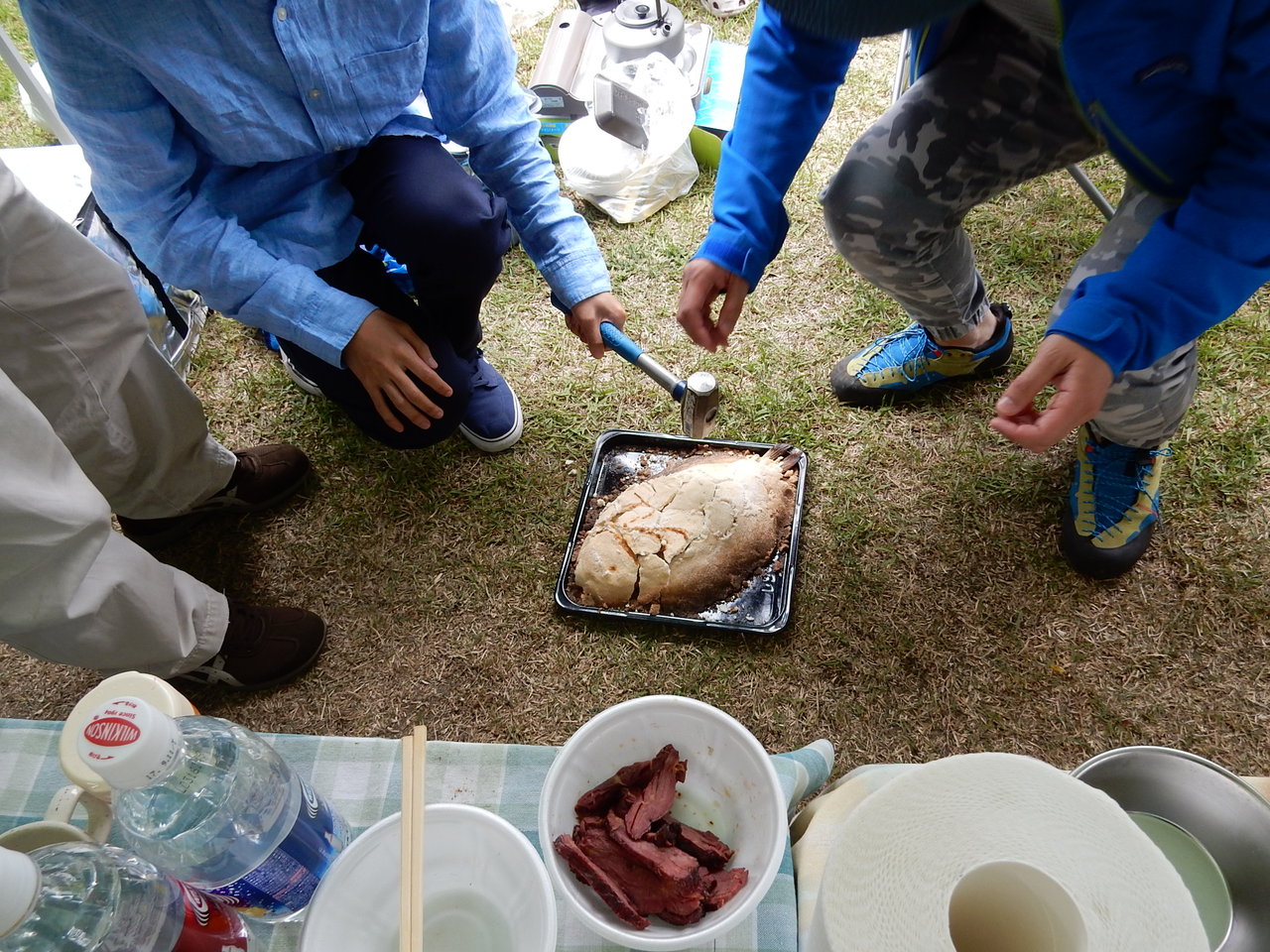 ちなみにお茶2ℓペットボトルを倒してあるのは、テーブルクロスが突風で翻らない工夫・・・