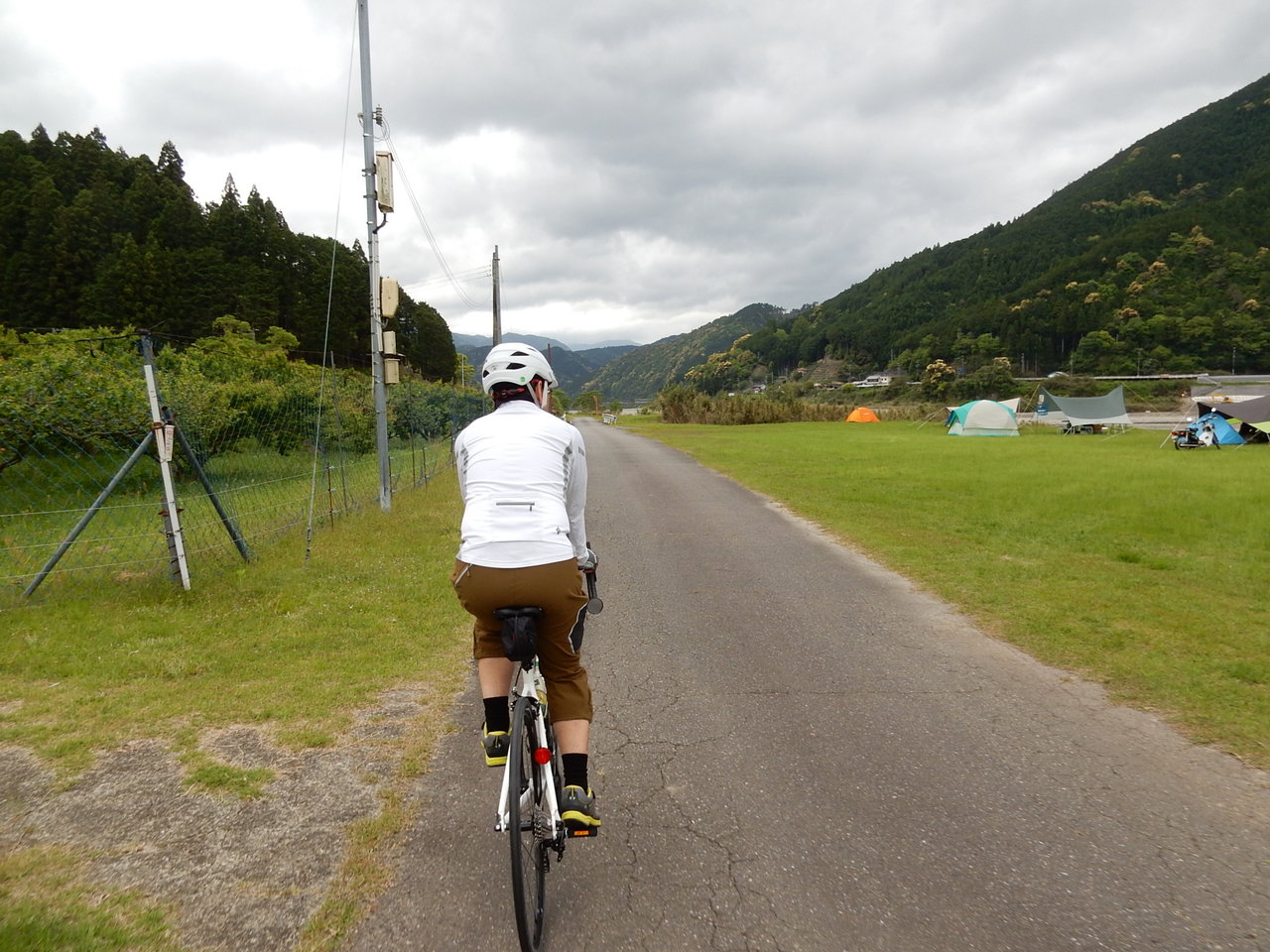 このキャンプ場あたりから雨がぽつぽつと降りはじめ・・・