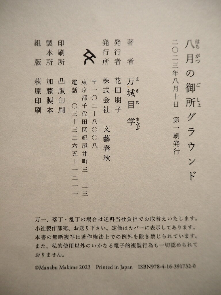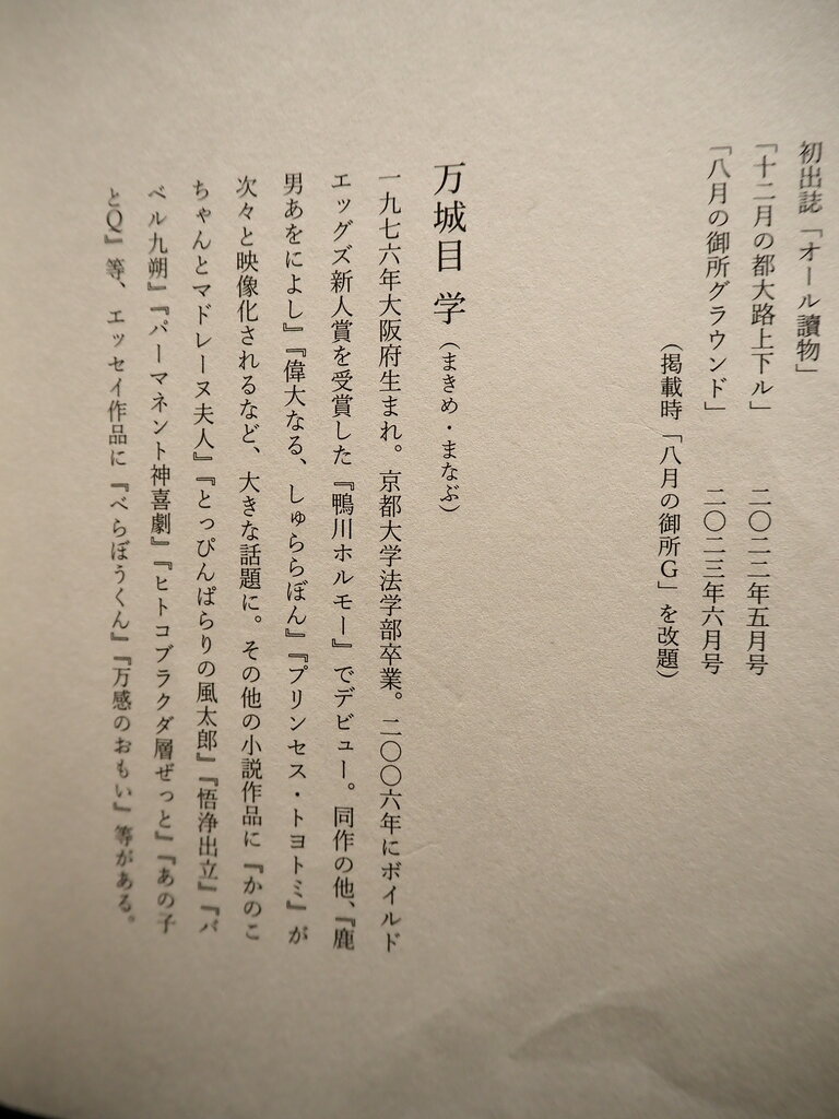 「八月の御所グラウンド」ほか1作のご紹介であります