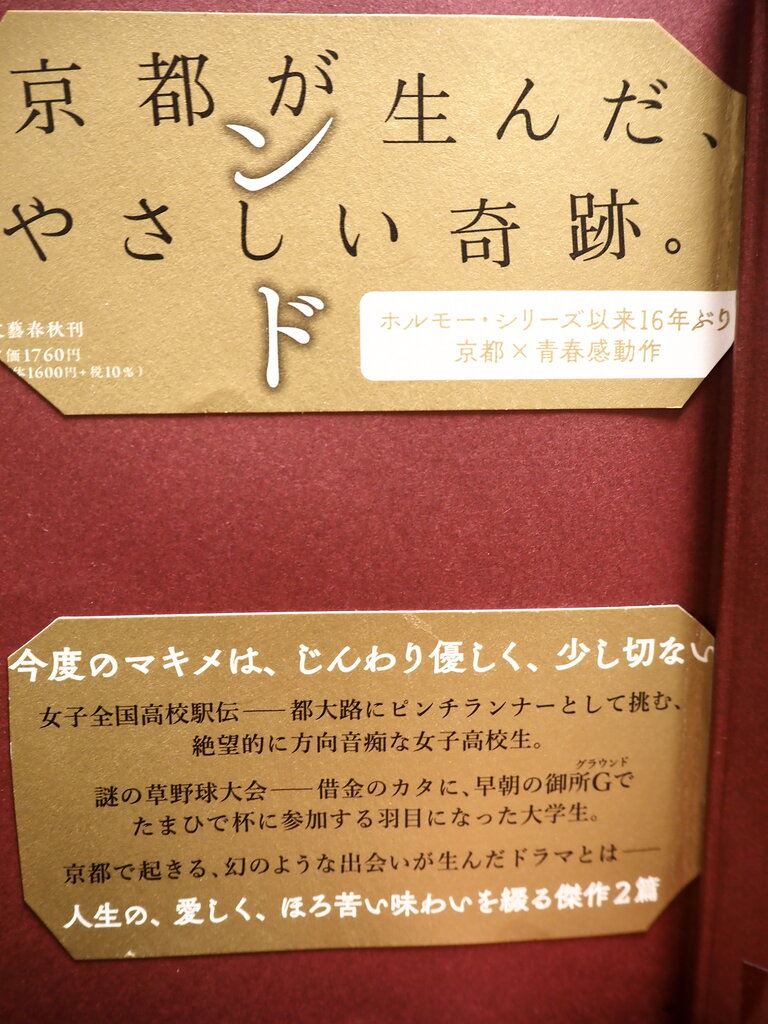 惹句には著者の「ホルモー・シリーズ以来16年ぶり(の)京都×青春感動作」とありますが、